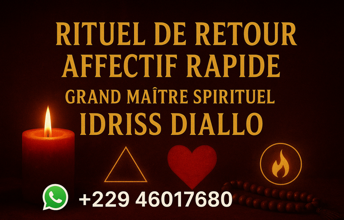 Le rituel retour affectif qui marche du meilleur marabout Diallo Idriss de retour d’affectation rapide VODOU,est un rituel puissant pour faire revenir l’être aimé.C’est un puissant rituel de retour d’affection rapide qui est sans retour sur la vie car c’est exécuté par le biais de la magie blanche pour le retour d’affection. Ce rituel peut avoir d’effet sur toute personne sans exception.Si par exemple vous aimez quelqu’un et ce dernier est partis pour de vaine chose,il est recommandé d’effectuer le rituel de retour d’affection rapide,c’est-à-dire en 3jours du puissant marabout voyant africain de retour d’affection rapide,