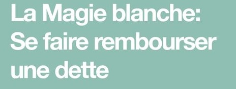 Comment se faire rembourser d’une dette grâce à un puissant rituel– D’une efficacité extrême, notre rituel pour vous faire rembourser une dette obtiendra gain de cause des plus mauvais payeurs en toute simplicité. Vous n’aurez à vous préoccuper de rien d’autre que de pratiquer le rituel dans les conditions indiquées. Mis au point par les plus grands magiciens, ce protocole unique se charge de tout. Votre argent vous reviendra comme par magie. Les débiteurs les plus récalcitrants règleront les sommes demandées sans faire d’histoires. Ce puissant charme de magie blanche agit en fait comme une sorte d’effaceur d’embûches, de nettoyeur de mauvaise foi et vient à bout des mauvais payeurs sans aucun effort. Ils vont se retrouver pris dans un flux énergétique qui les obligera à rembourser leurs dettes sans discuter ni trainer ou trouver de quelconques excuses fallacieuses. Notre rituel pour vous faire rembourser une dette est l’atout indispensable pour récupérer votre argent sans tracas ni procédure couteuse.