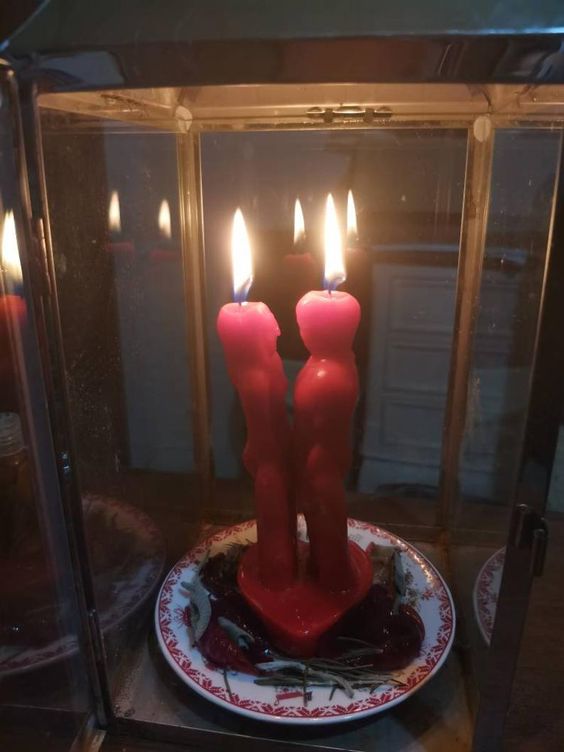 En mettant sur une table les photos des parties intéressées, en allumant la bougie et l’encens, pensez à l’objectif souhaité et écrivez-le sur la feuille de parchemin, en agissant avec tout le pouvoir motive la volonté que cela se produise. Laissez la bougie complètement être consommée et une fois éteinte récupérer ce qui reste du rituel (poudre d’ennage, parties de bougies, feuille de parchemin et photos) insérer tout dans un morceau d’ovatta et enterrer sous un arbre fruité. Après avoir subtrié le rituel, penser rituel et imaginer chaque jour que l’aiment l’aimé est revenu et que l’amour du couple est fort et durable.